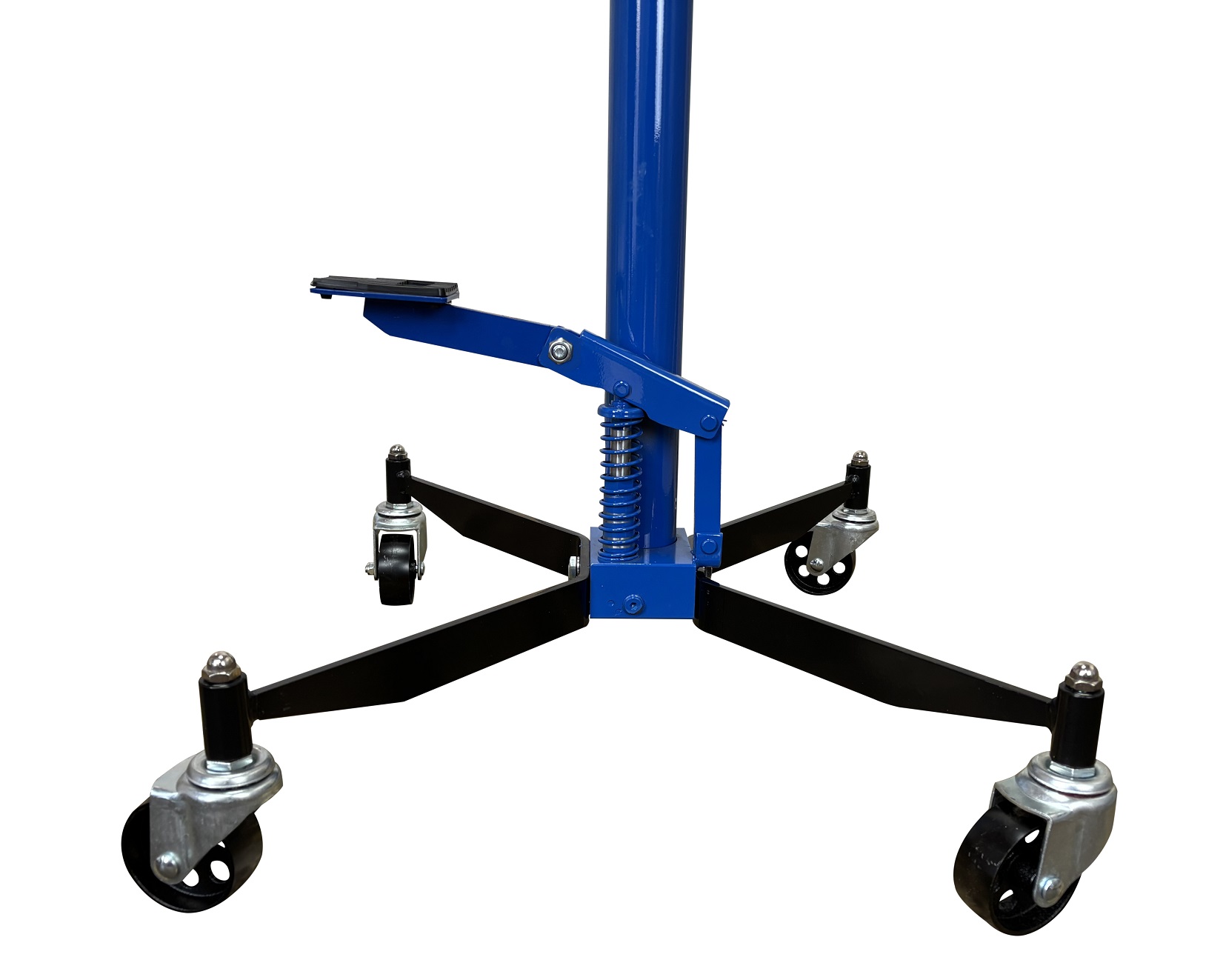 Хромированный шток – 30 мм. Цилиндр с клапанным блоком и возвратной пружиной. 2 ручки для перемещения. 4 поворотных колеса с подшипниками обеспечивают легкость перемещения. Удобная педаль подъёма с резиновой накладкой. Для монтажа и демонтажа узлов трансмиссий, тормозных суппортов и других агрегатов автомобиля, или технического обслуживания.